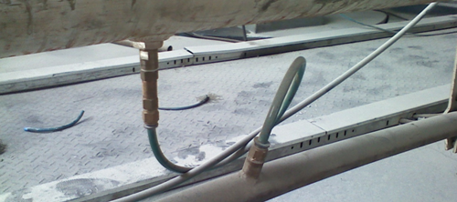 高压低速气力输送可采用主管和辅管双气力输送管道。辅管平行配置于主输送管旁。在主管和辅管之间每隔500mm~1000mm有一个连接管,在连接管上装有过滤嘴、单向阀。如图2示。